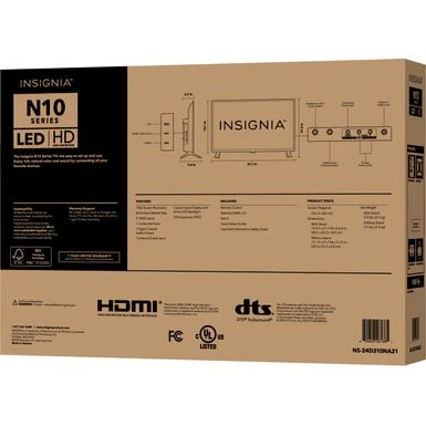 This 24-inch screen has clear images and rich, natural color with an LED flat-screen and 720p HD resolution. It has the connections you need for video players, speakers and more. VESA mounting holes make wall mounting easy. Relax with the Insignia NS-24D310NA21 24″ Class N10 Series LED HD TV.
