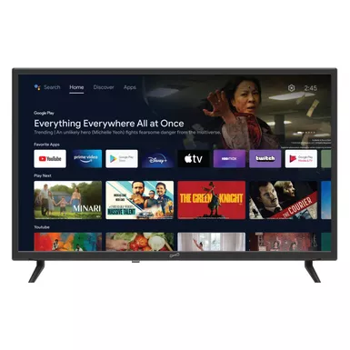 Watch your favorites with this Google Android TV. Built-in Google Assistant. HDMI input compatible. Built-in Wifi 802.11a/b/g/n. USB input lets you play pictures and music. Digital noise reduction. Anti-glare coating. Multiple picture and sound modes. Sleep timer function. Audio output power: 2 x 8W. Aspect ratio: 16:9. 1366 x 768 Resolution. Refresh rate: 60Hz. Power input: AC 100-240V 50/60Hz. Inputs: 3 HDMI 2 USB Optical AV RF. Includes remote control and AC power cord. Dimensions: 28.81″ x 8.97″ x 19″.